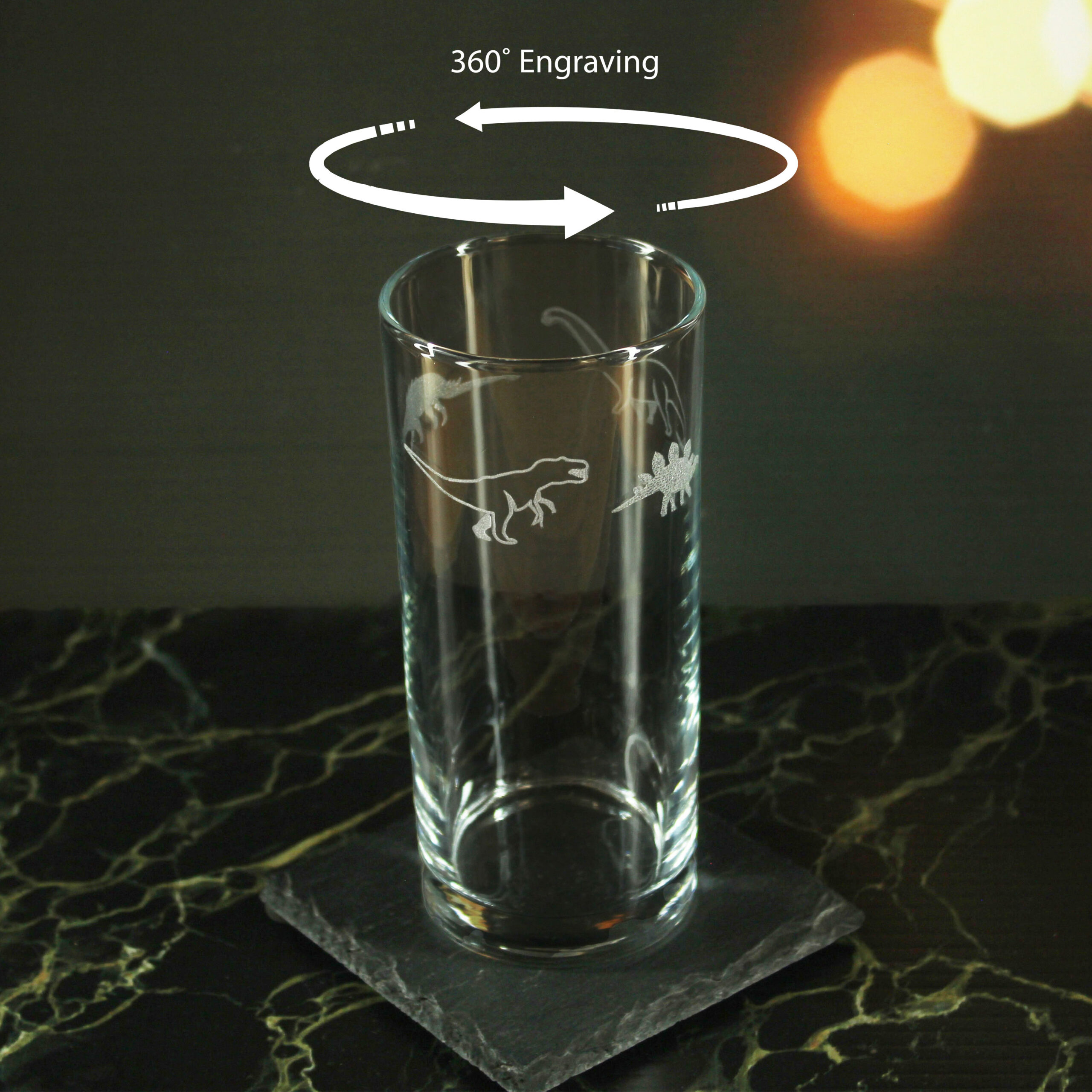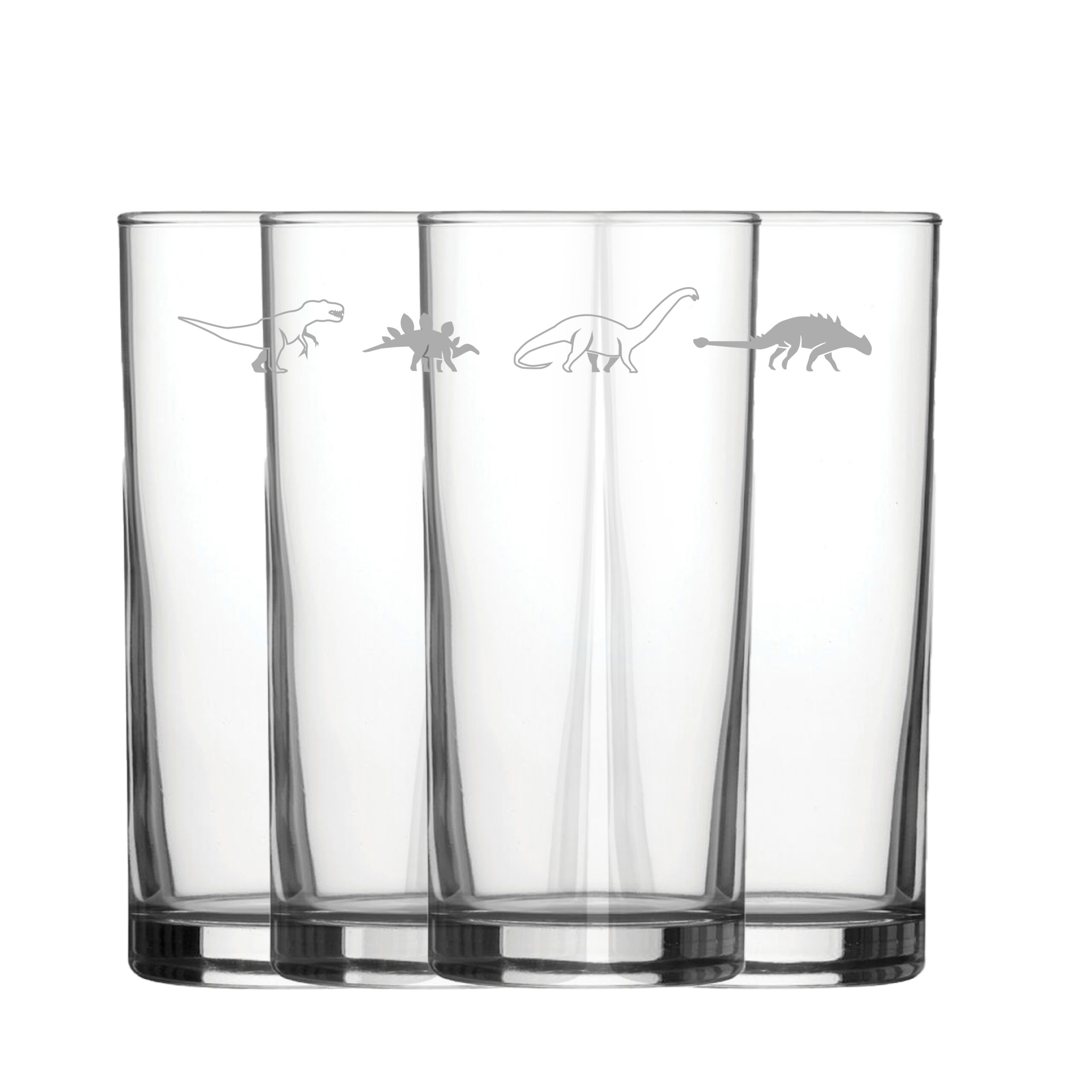 Engraved Dinosaur Pattern Hiball Set of 4 12oz Glasses