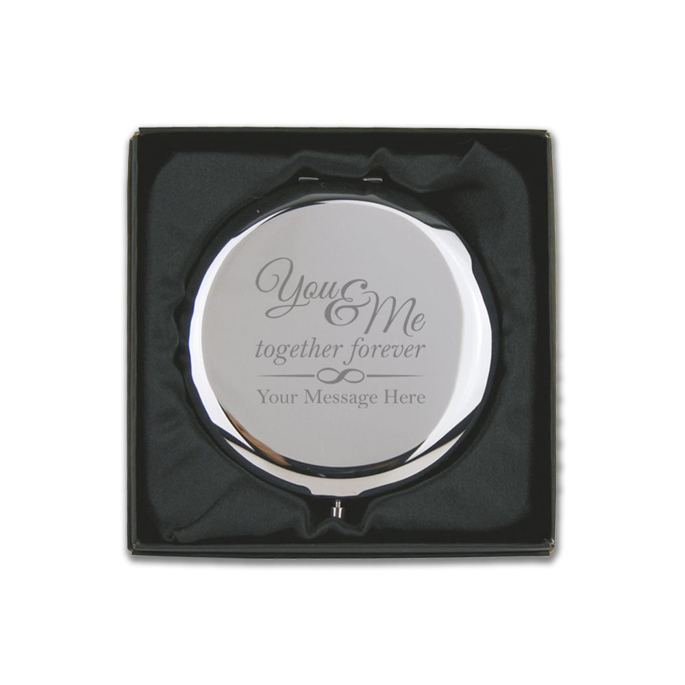 Engraved Round Compact Mirror with You & Me, together forever Design
