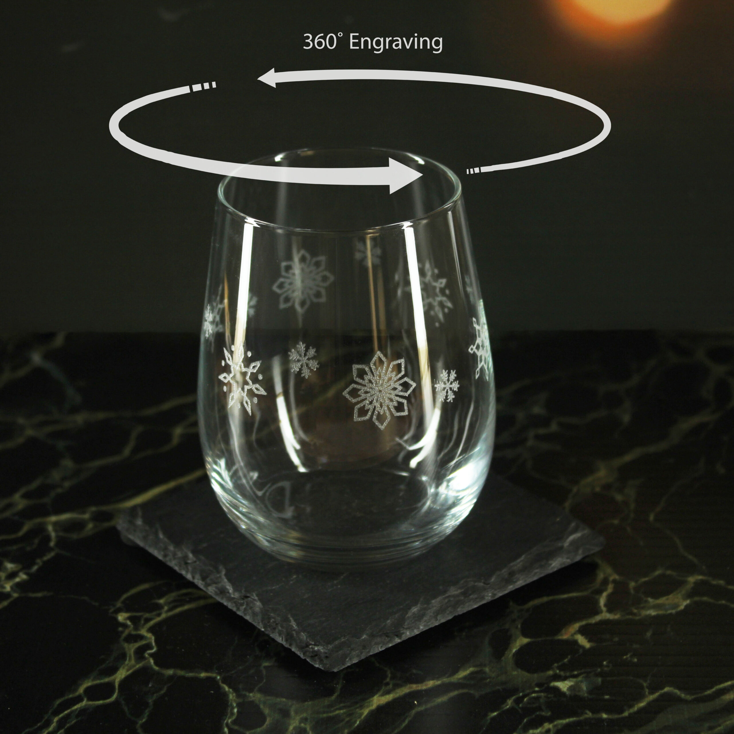 Engraved Snowflake Pattern Stemless wine, Gaia Set of 4, 12oz