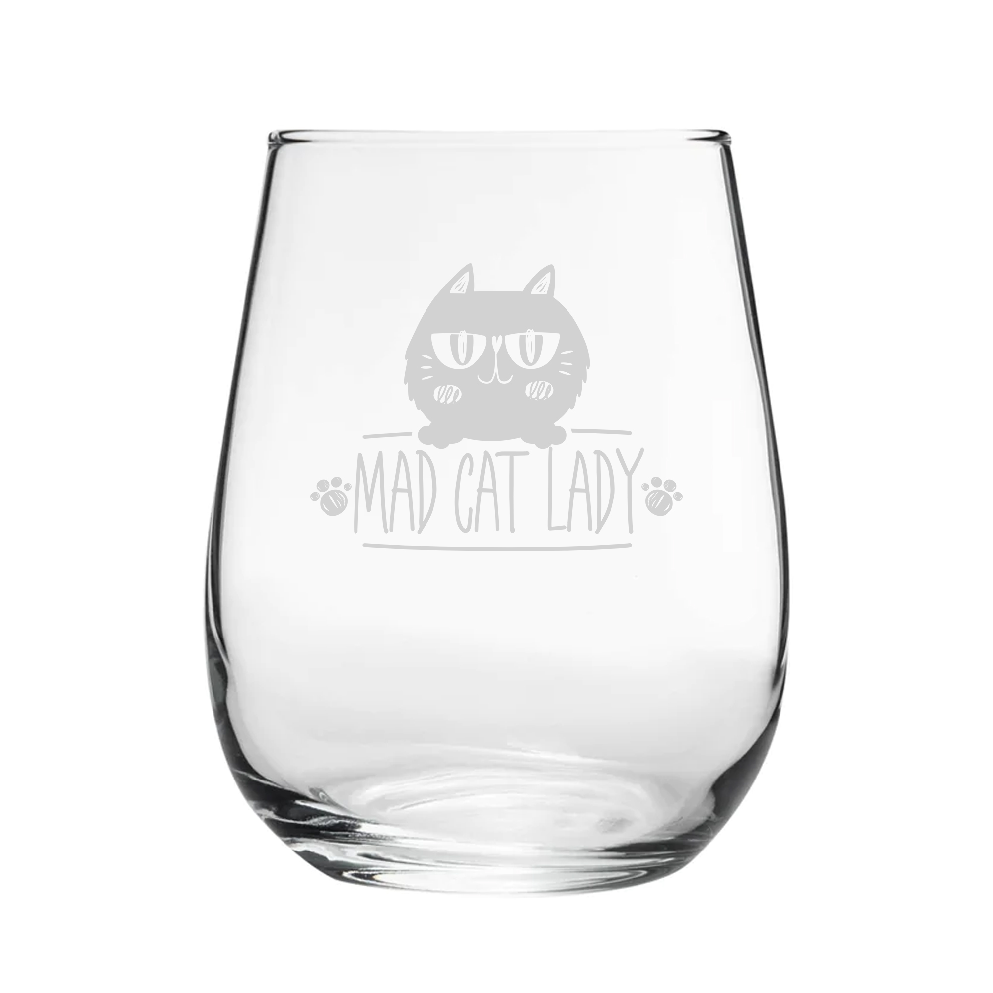 Gift the cat lover you know their own novelty gin glass! Featuring a Mad Cat Lady design, this charming glass makes for the perfect gift. Engraved on a contemporary stemless goblet, this drinking vessel holds 360ml. By being engraved, the novelty design will be everlasting and won’t wash away when cleaned with by hand or in the dishwasher. Partnered with a fantastic gift box, this glass makes the perfect gift for any event, such as birthdays, Christmas, Mother’s Day and retirements; ready to be gifted, this glass is eager to bring smiles and make for a memorable present.