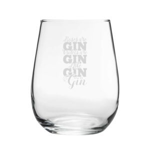 Gift the gin lover you know a novelty gin glass! Featuring a “Roses Are Gin, Violets Are Gin, I Like Gin, Gin” design, this charming glass makes for the perfect gift. Engraved on a contemporary stemless goblet, this drinking vessel holds 360ml. By being engraved, the novelty design will be everlasting and won’t wash away when cleaned with by hand or in the dishwasher. Partnered with a fantastic gift box, this glass makes the perfect gift for any event, such as birthdays, Christmas, Mother’s & Father’s Day, and retirements; ready to be gifted, this glass is eager to bring smiles and make for a memorable present.
