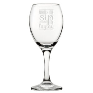 Go viral with our novelty wine glass! Featuring a “Watch Me Sip, Now Watch Me Laylay” design, this charming glass makes for the perfect gift. Engraved on a classically shaped wine glass, this drinking vessel holds 310ml. By being engraved, the novelty design will be everlasting and won’t wash away when cleaned with by hand or in the dishwasher. Partnered with a fantastic gift box, this glass makes the perfect gift for any event, such as birthdays, Christmas, Mother’s & Father’s Day, and retirements; ready to be gifted, this glass is eager to bring smiles and make for a memorable present.